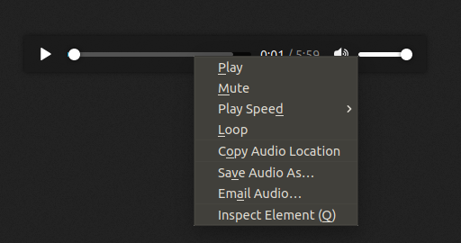 Using the built in browser player in Firefox as an example, I can now press the play button and the audio of the broadcast plays at normal speed. This is too fast for me to keep up. By right clicking on the audio player interface I can choose "Play Speed" from the menu that pops up to produce another menu with options to play at a different speed.